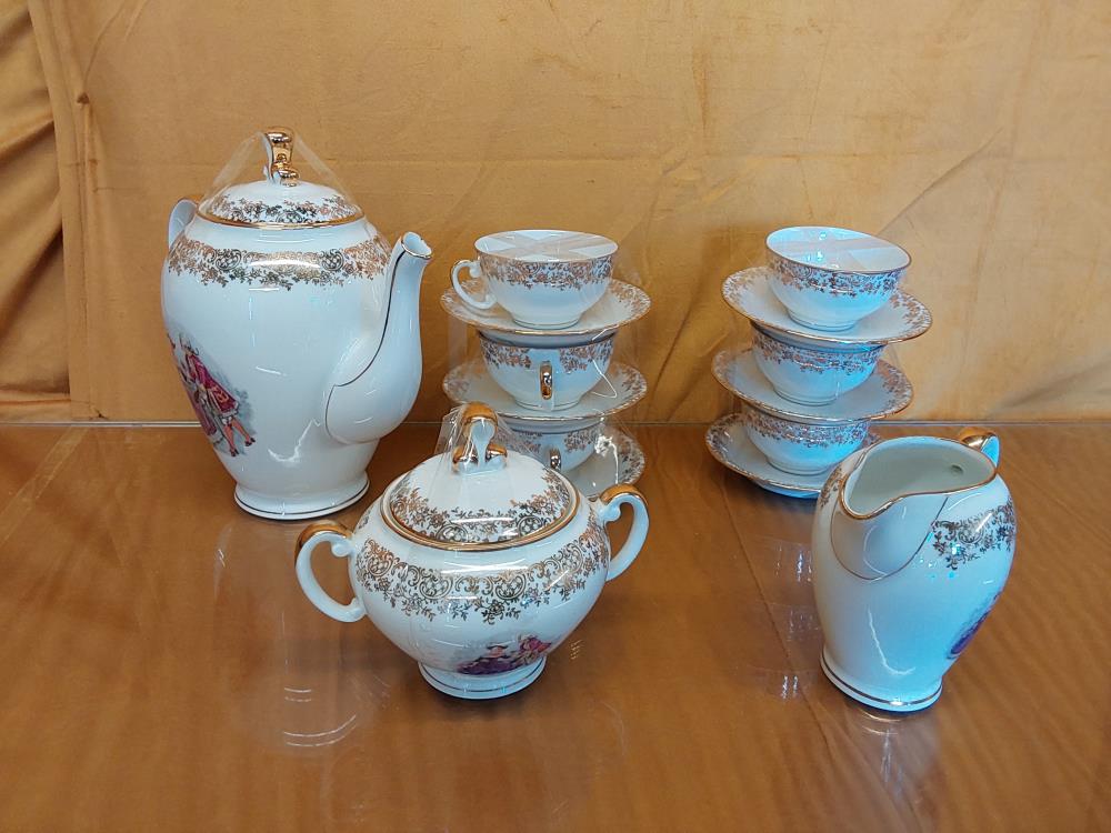 SERVICE A CAFE SFP PORCELAINE MOTIF MARQUISE 6 PERS