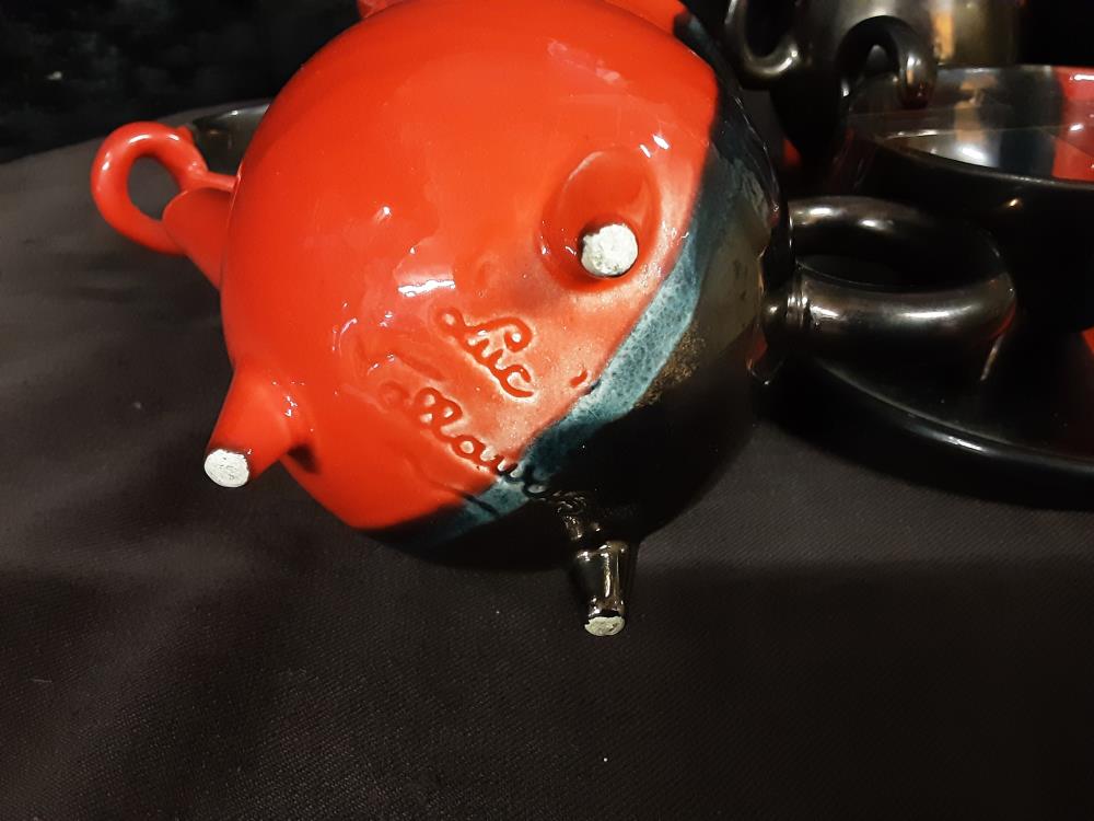 SERVICE A THE TETE A TETE VALLAURIS NOIR ET ROUGE