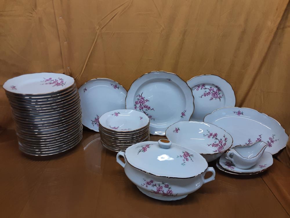 24 assiettes plates - 12 assiettes creuses + soupière + 2 raviers + 1 saucière + 1 saladier + 4 plats