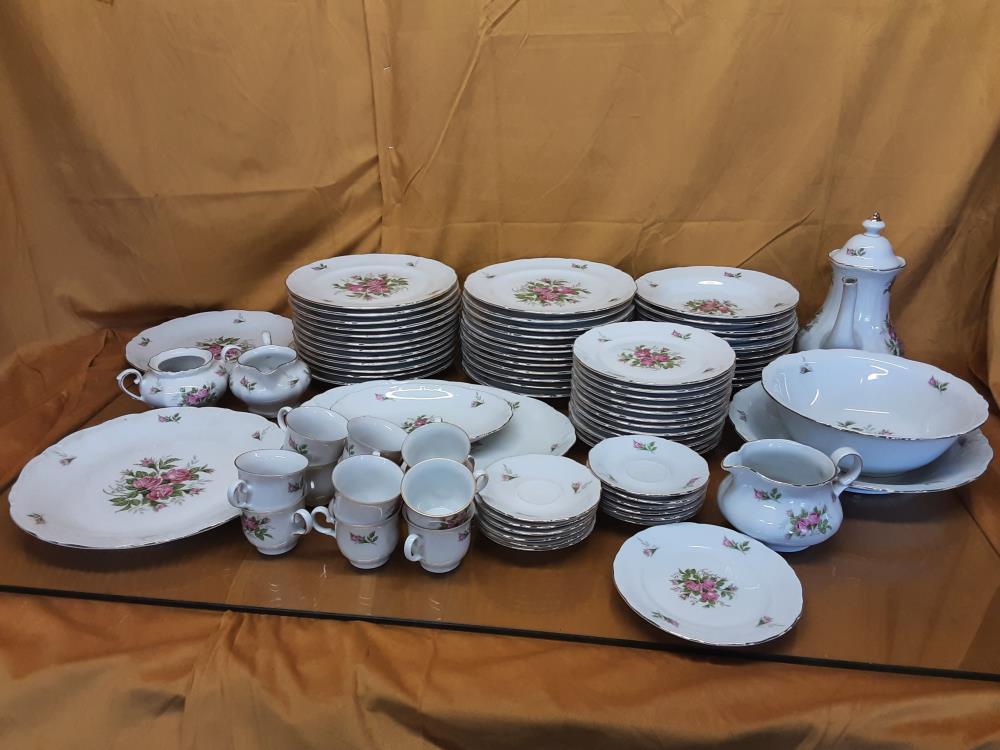 SERVICE DE TABLE BAVARIA BORDURE DORÉE FLEURS ROSES 70PCS