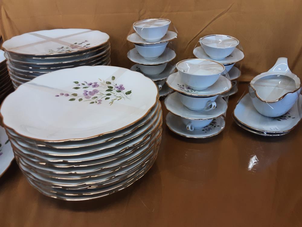 SERVICE DE TABLE + TASSES A CAFE PORCELAINE DE LUXE MOTIF FLEURS VIOLETTES