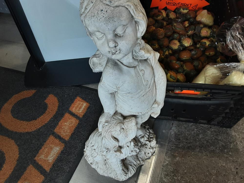 STATUE BETON BLANC FILLE CHIEN D'EXTERIEUR HAUT 50CM