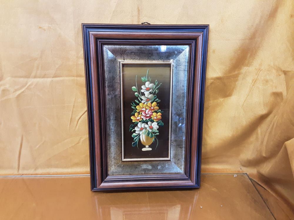 TABLEAU CADRE BOIS ET DORURE MOTIF FLEURS