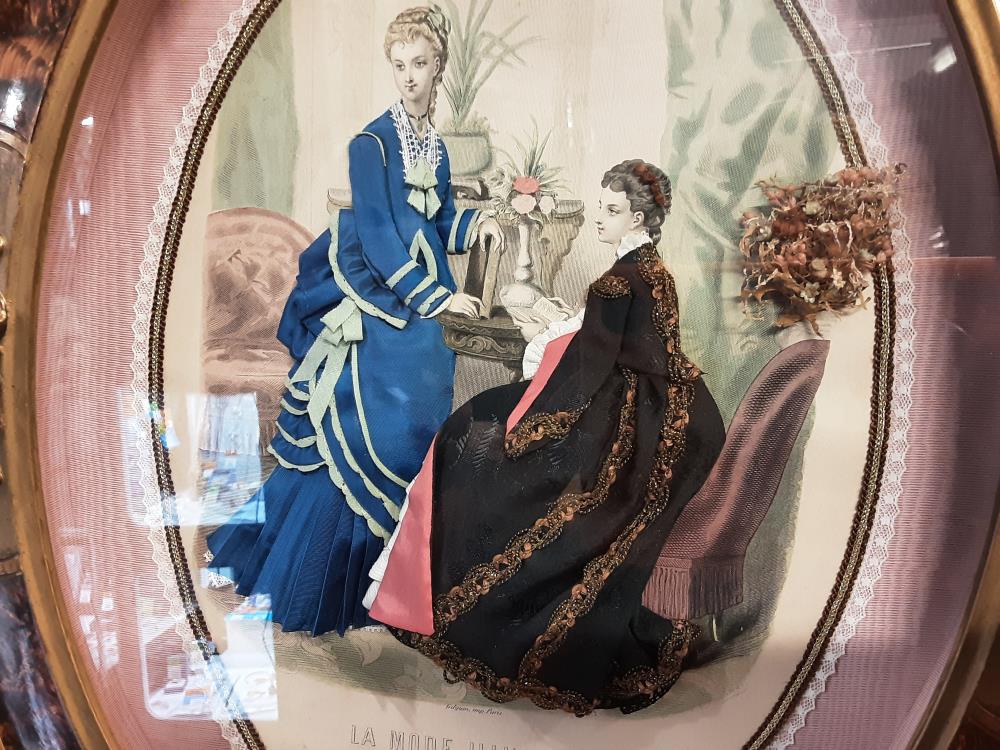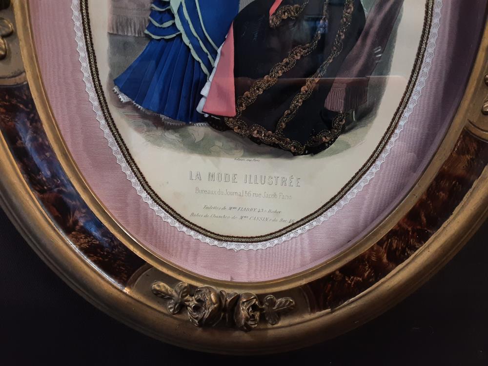 TABLEAU OVALE CADRE NOEUDS MOTIF : "LA MODE ILLUSTRÉE" TISSU EN RELIEF