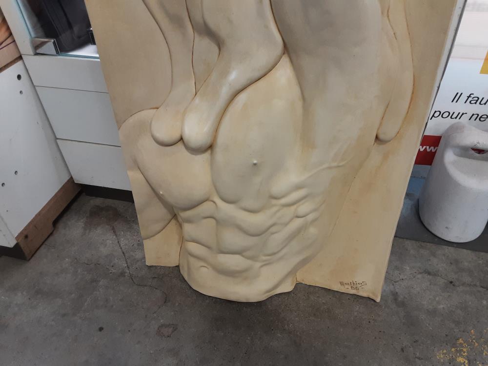 TABLEAU PLATRE BUSTE HOMME EN RELIEF SIGNE MATHIAS