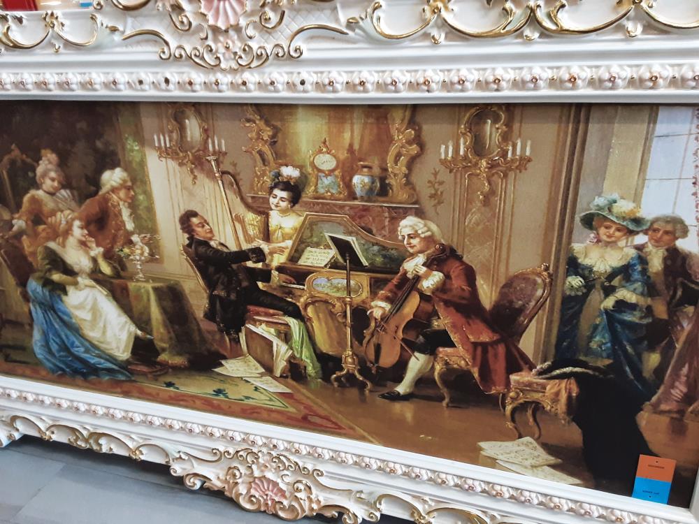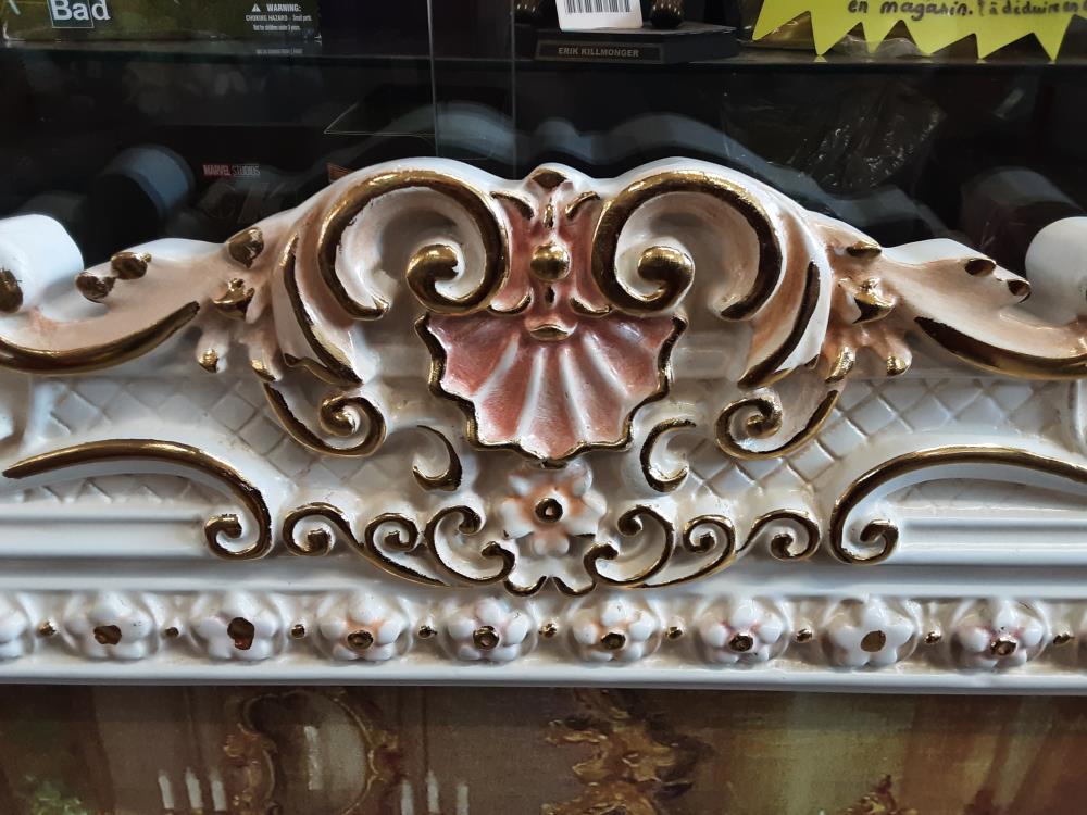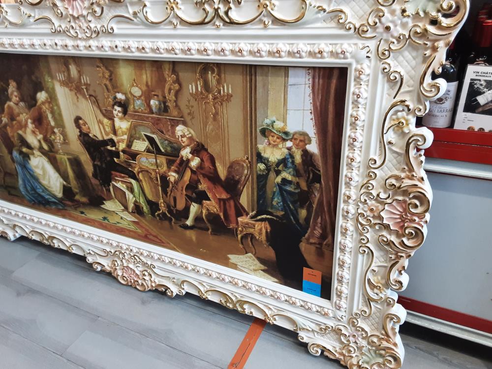 TABLEAU TGM CADRE BAROQUE BLANC DORE ROSE MOTIF MARQUISE MUSICIENS