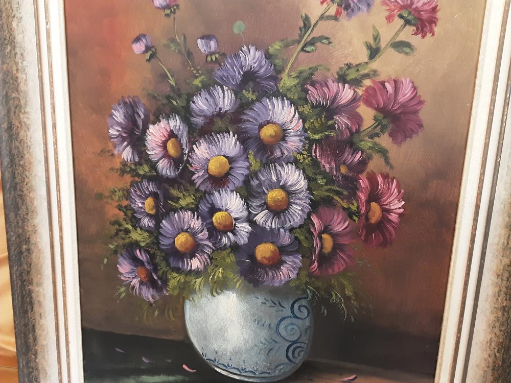 TABLEAU VASE FLEURS ROSES ET VIOLETTES