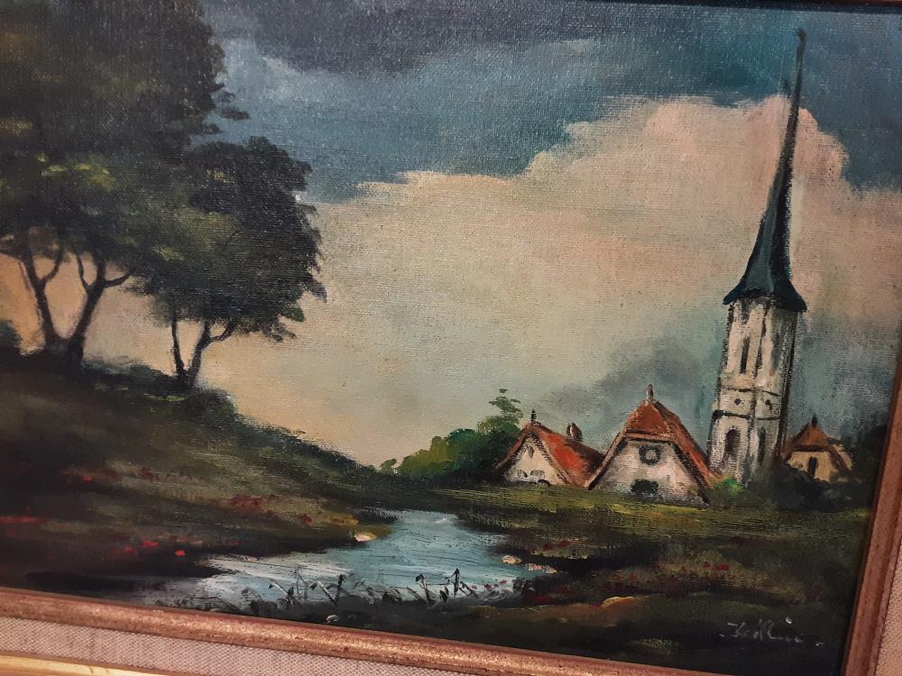 TABLEAU VILLAGE ET RIVIÈRE SIGNÉ KEIFLIN