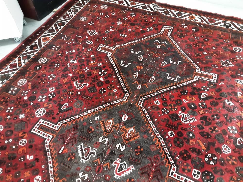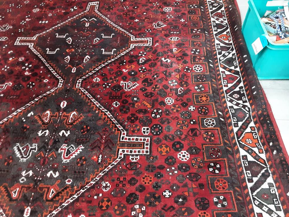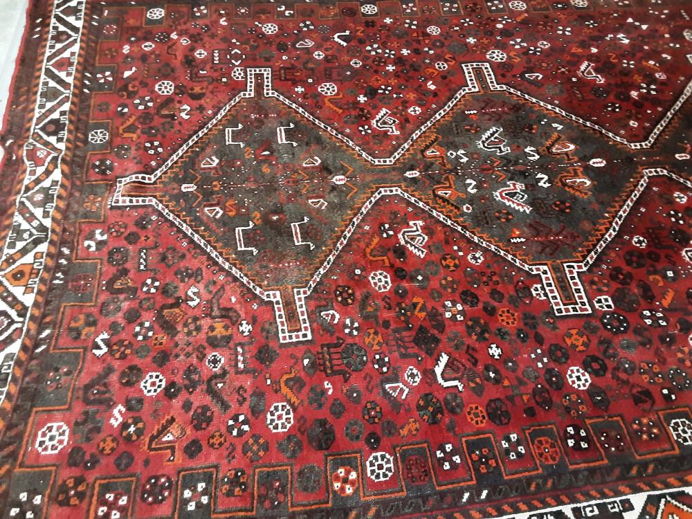 TAPIS FAIT MAIN LAINE ET SOIE NETTOYE ET TRAITE ANTI MITE ROUGE