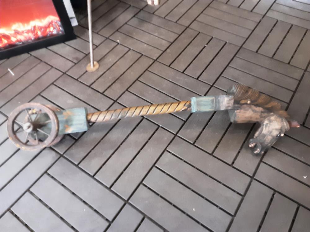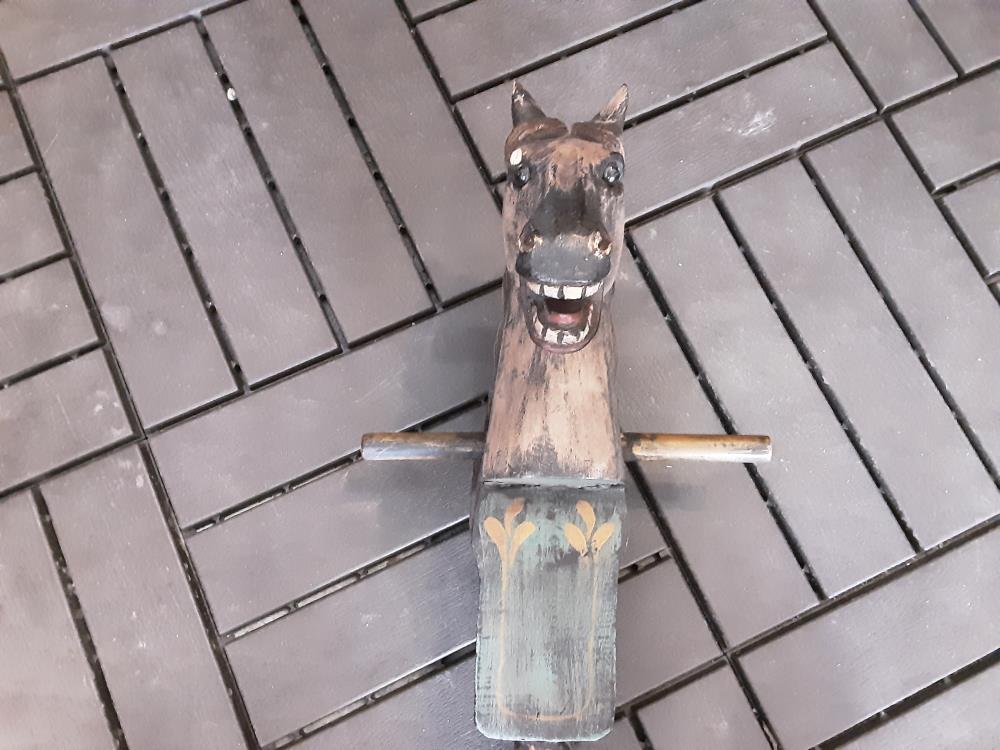 TETE DE CHEVAL EN BOIS SUR ROULETTES