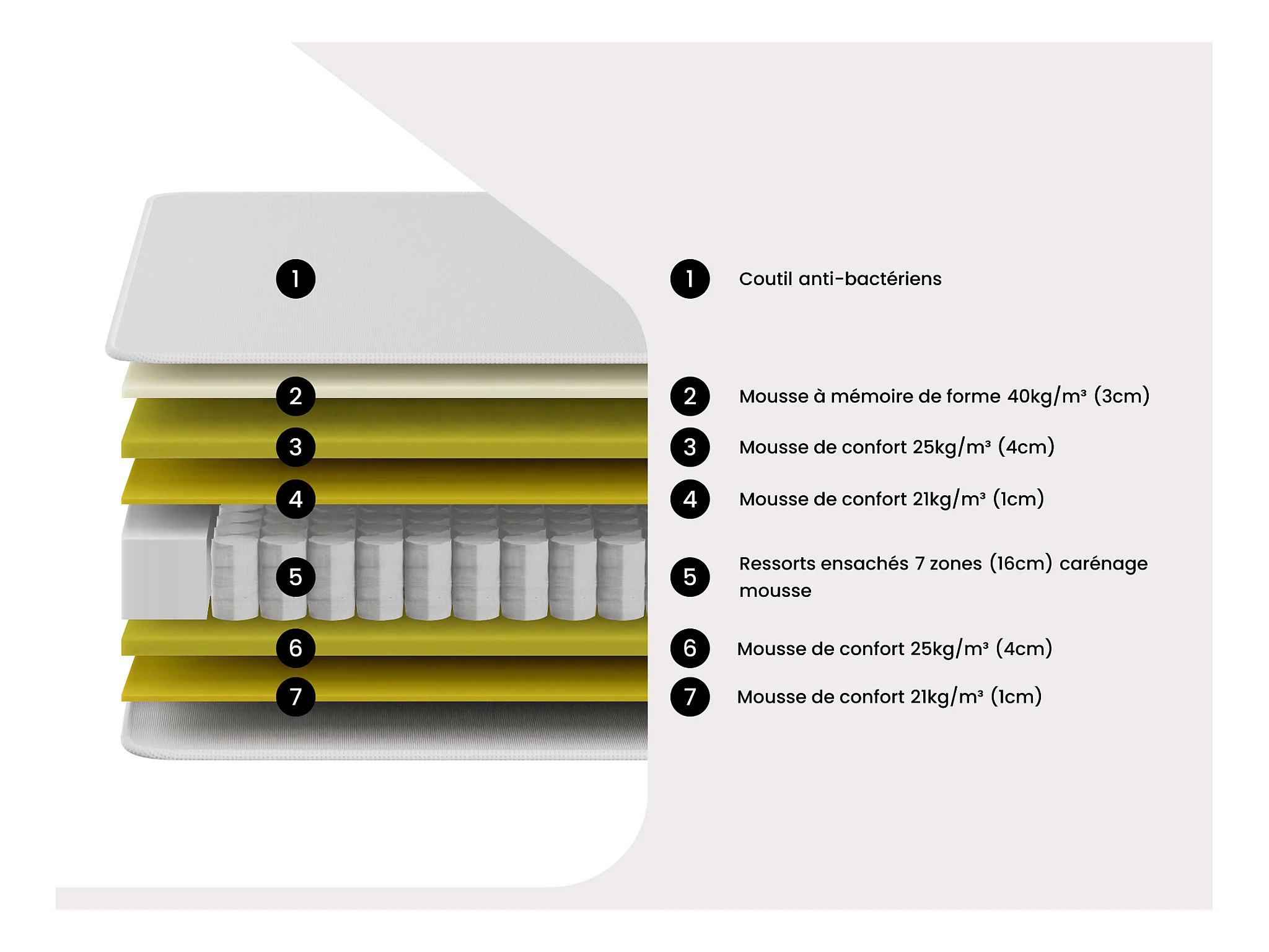 MATELAS 160X200CM HYBRIDE RESSORTS ENS.+MÉMOIRE DE FORME ÉP.30CM (1169489/149613) 2ÈME CHOIX