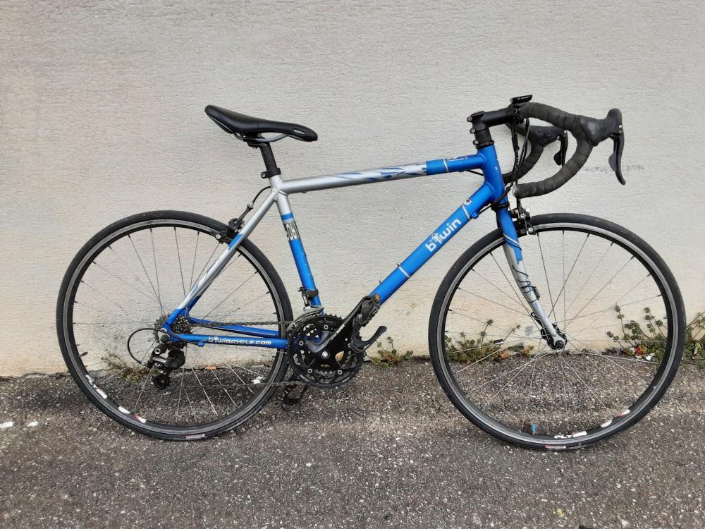 VELO DE COURSE BTWIN CADRE ALUMINIUM BLEU ET GRIS