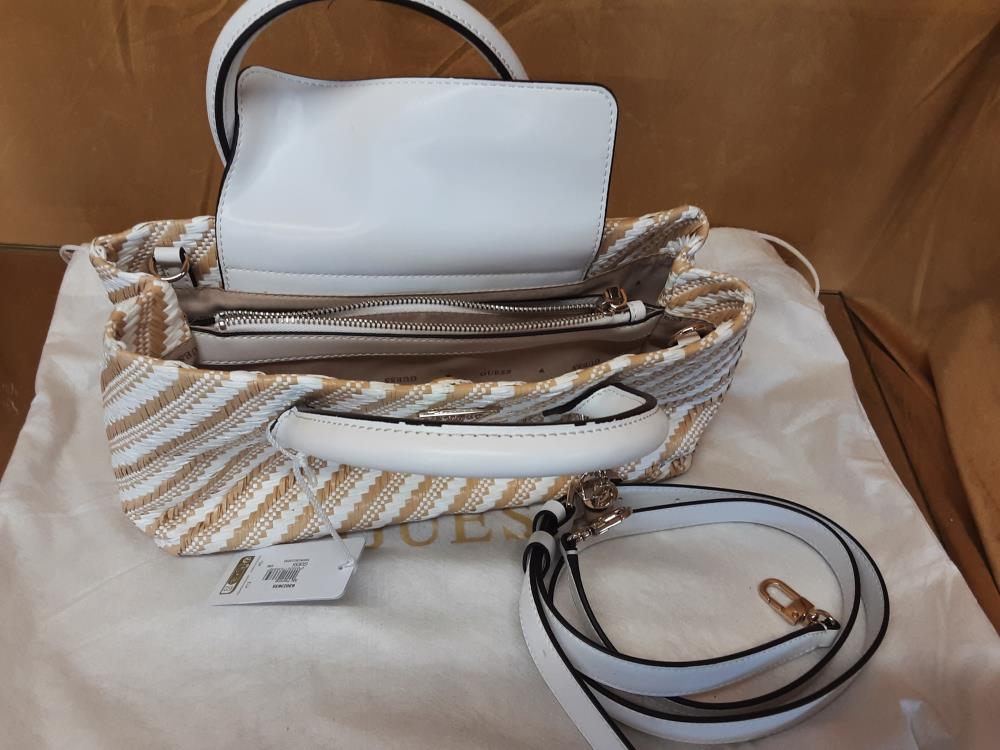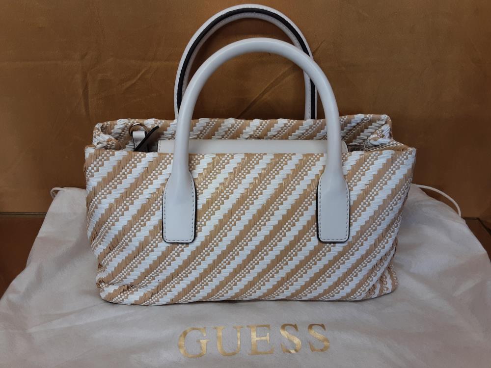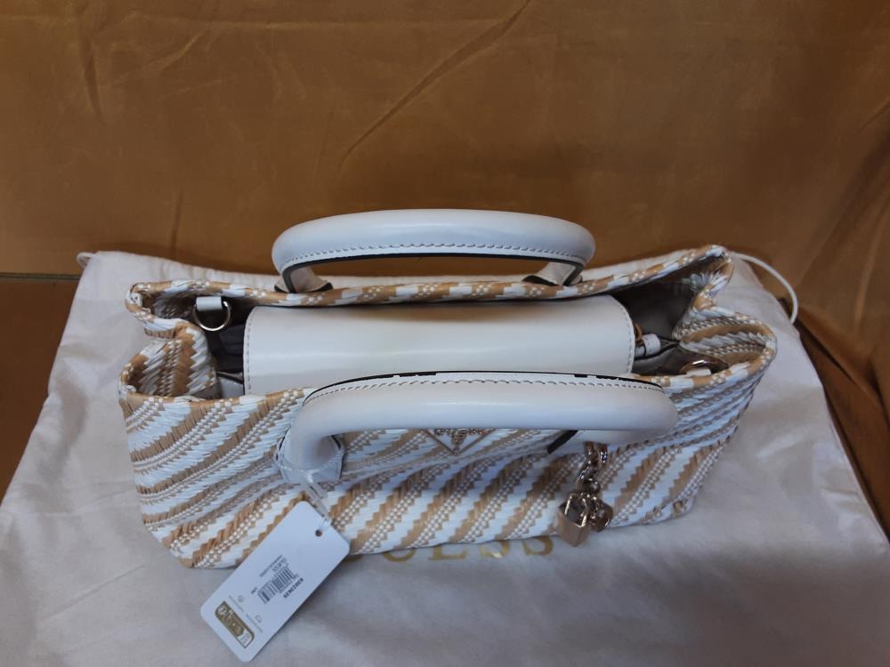 SAC A MAIN GUESS TISSU ET PAILLE ET SIMILI CUIR BLANC