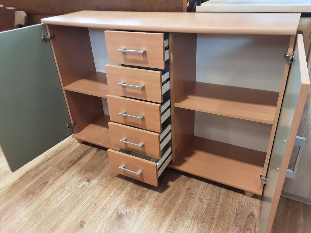 BAHUT BAS 2 PORTES 5 TIROIRS COLORIS VERT ET BRUN