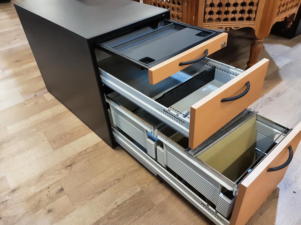 CAISSON DE BUREAU 3 TIROIRS ( SANS CLE) METAL GRIS COLORIS BRUN