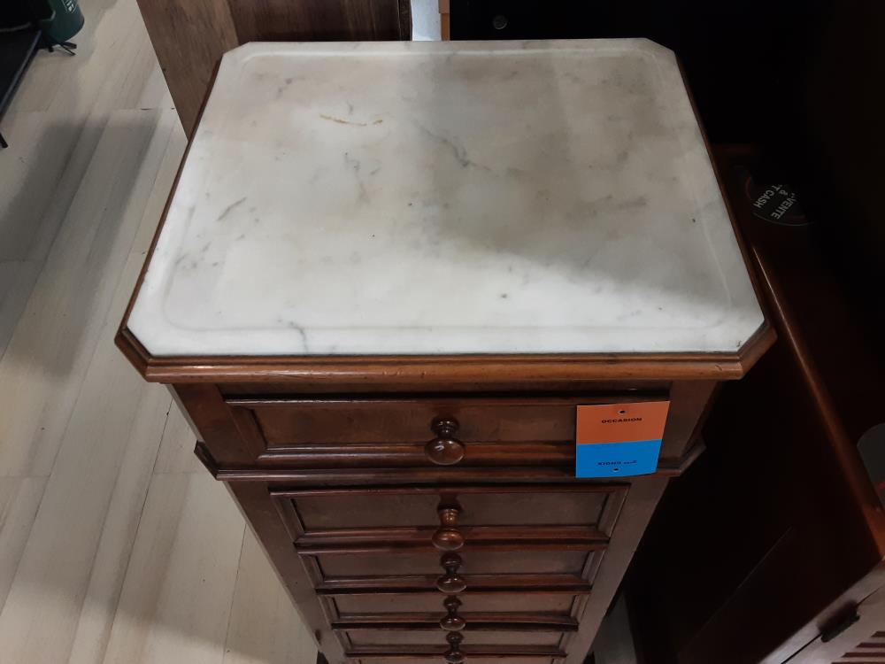 CHIFFONNIER 6 TIROIRS DESSUS MARBRE BLANC