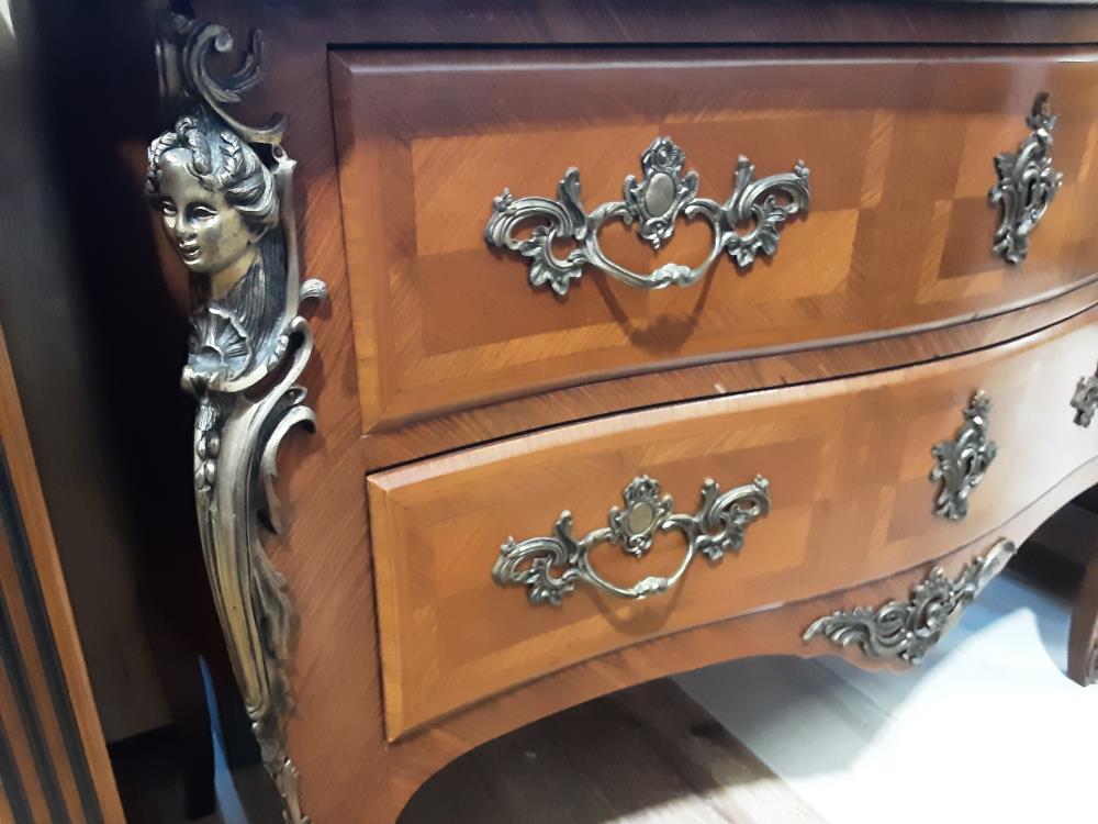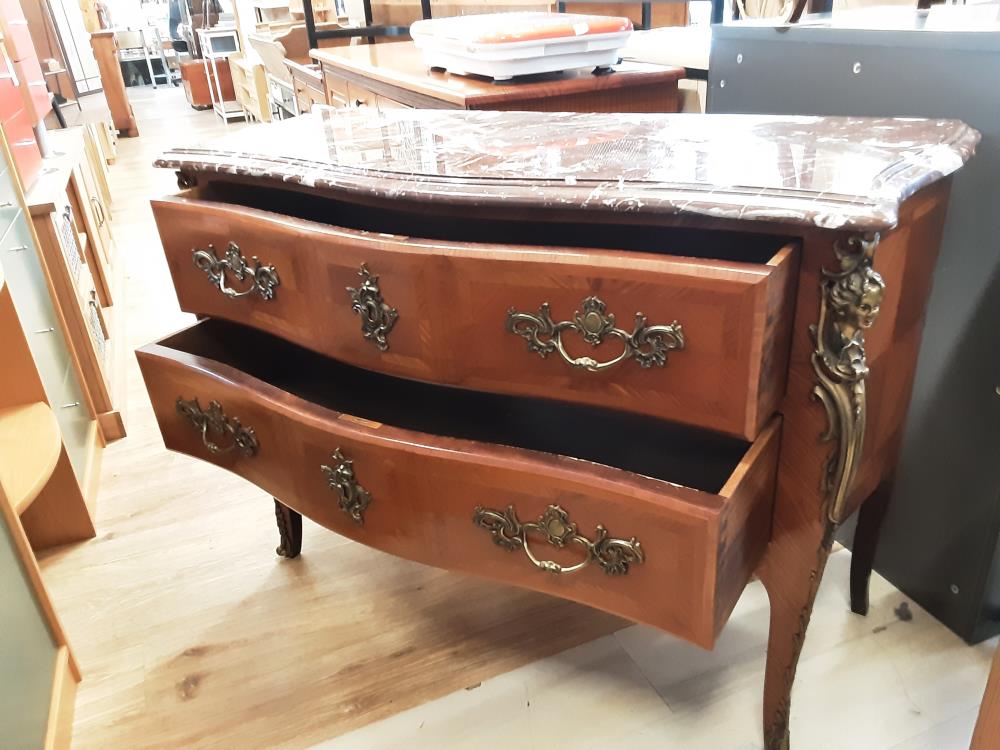 COMMODE 2 TIROIRS PLATEAU MARBRE BRUN