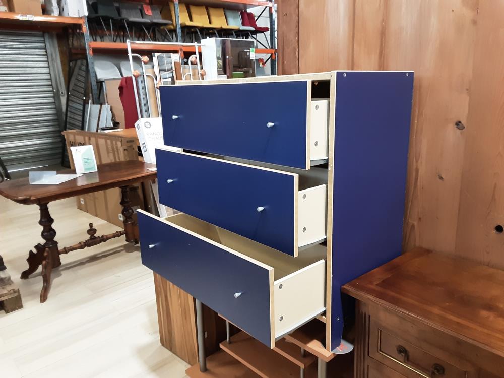 COMMODE 3 TIROIRS COLORIS BLEUE ET BRUN