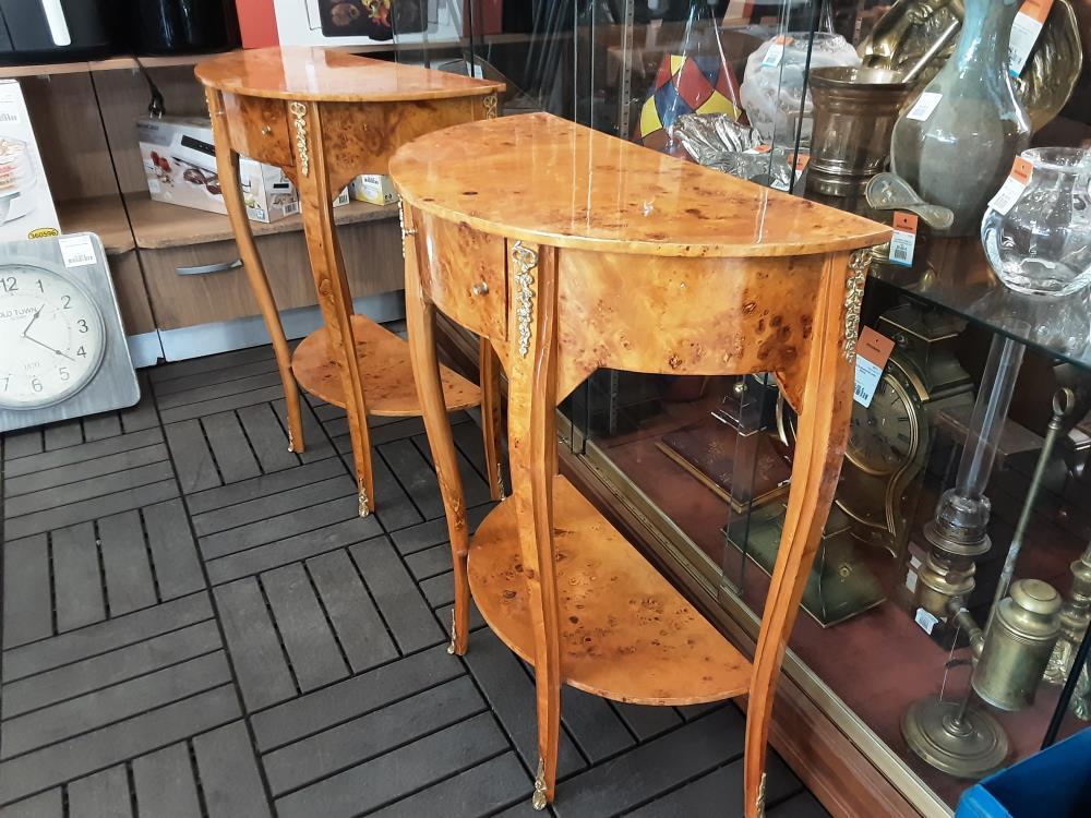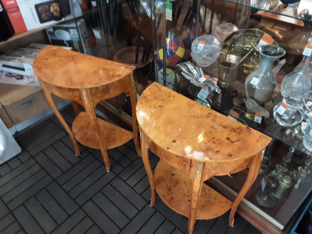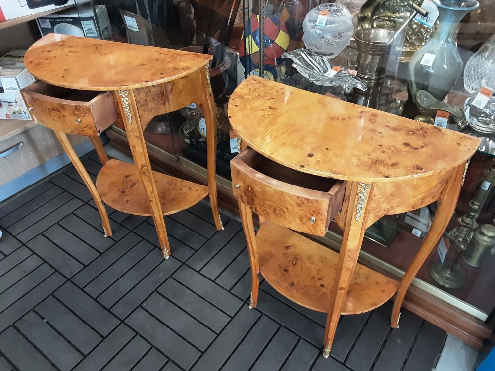 CONSOLE DEMI LUNE 1 TIROIR PLACAGE BOUS STYLE BOIS DE ROSE