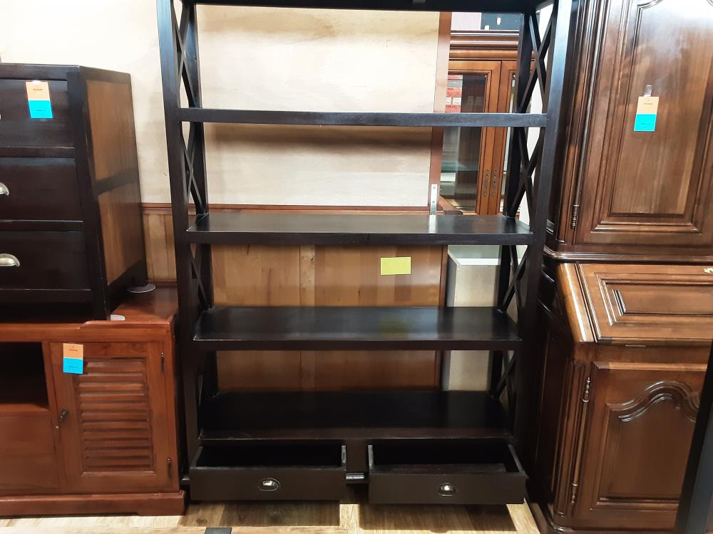 ETAGERE BIBLIOTHEQUE WENGUE BOIS ETAGES 2 TIROIRS