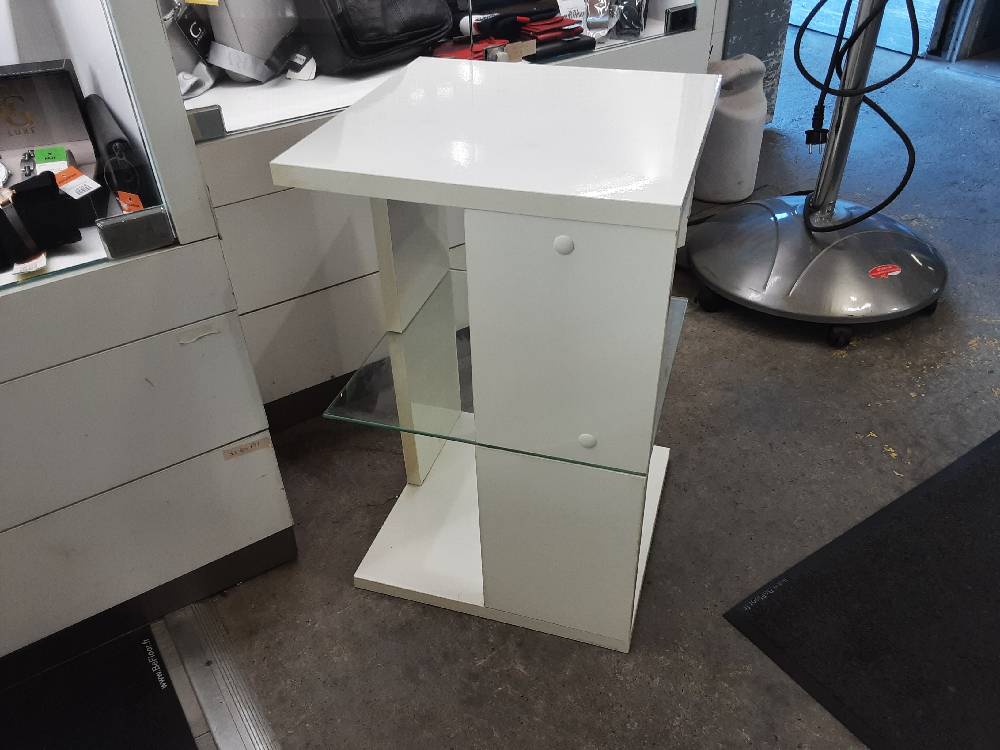 GUERIDON CARRE BLANC LAQUÉ + VERRE