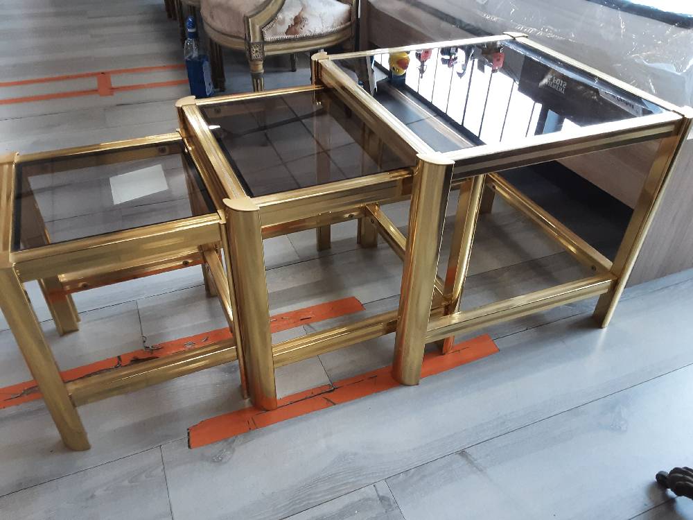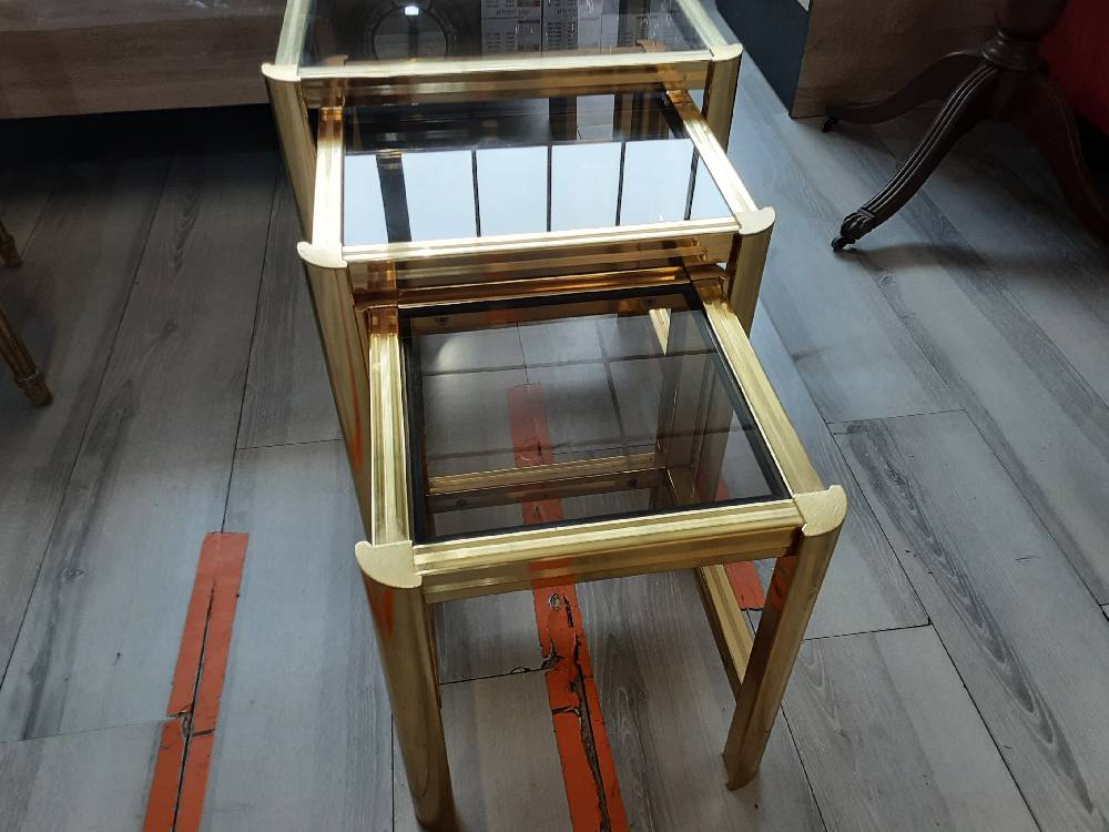 LOT DE 3 TABLES GIGOGNES EN LAITON PLATEAU VERRE