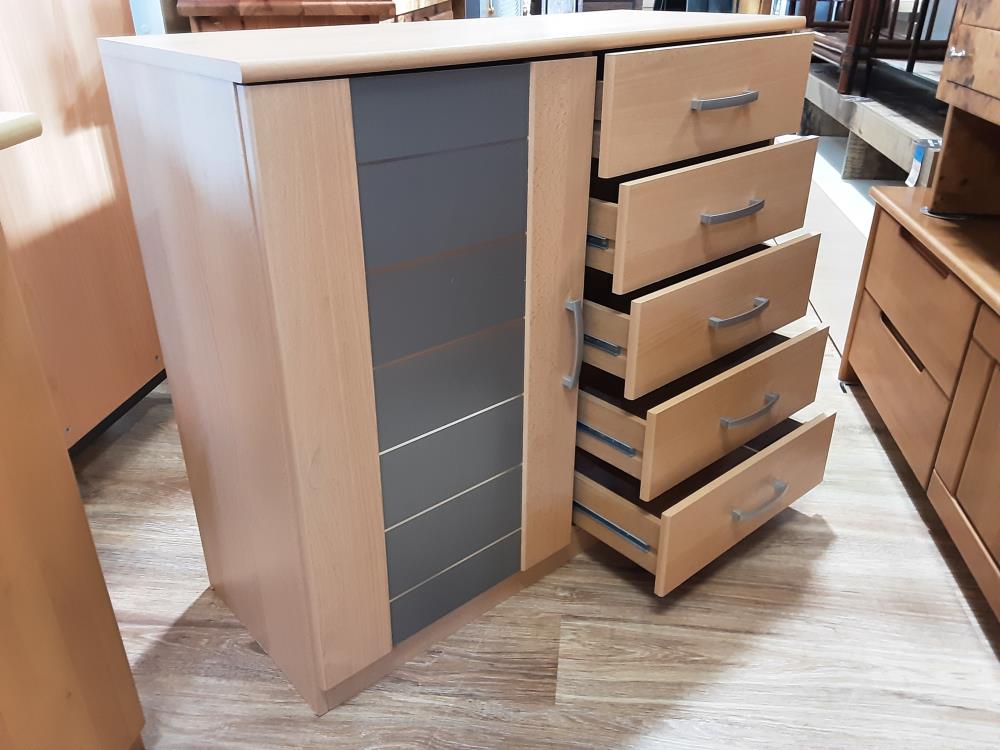 MEUBLE 1 PORTES 5 TIROIRS COLORIS BRUN ET GRIS