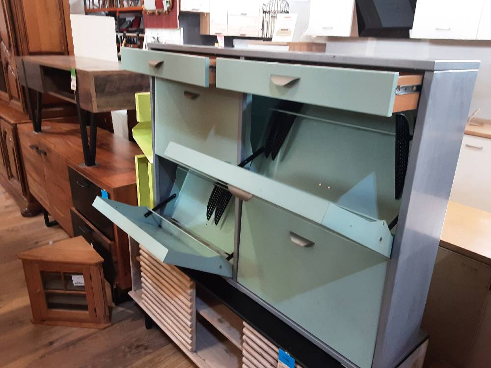 MEUBLE A CHAUSSURE4 PORTES 2 TIROIRS METAL GRIS ET VERT