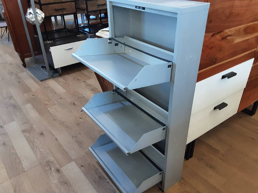 MEUBLE A CHAUSSURES 3 PORTES METAL GRIS