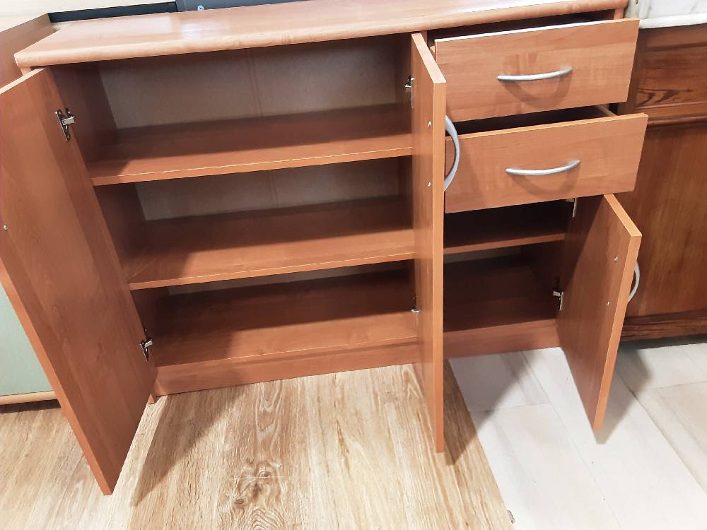MEUBLE BAS 3 PORTES 2 TIROIRS COLORIS BRUN