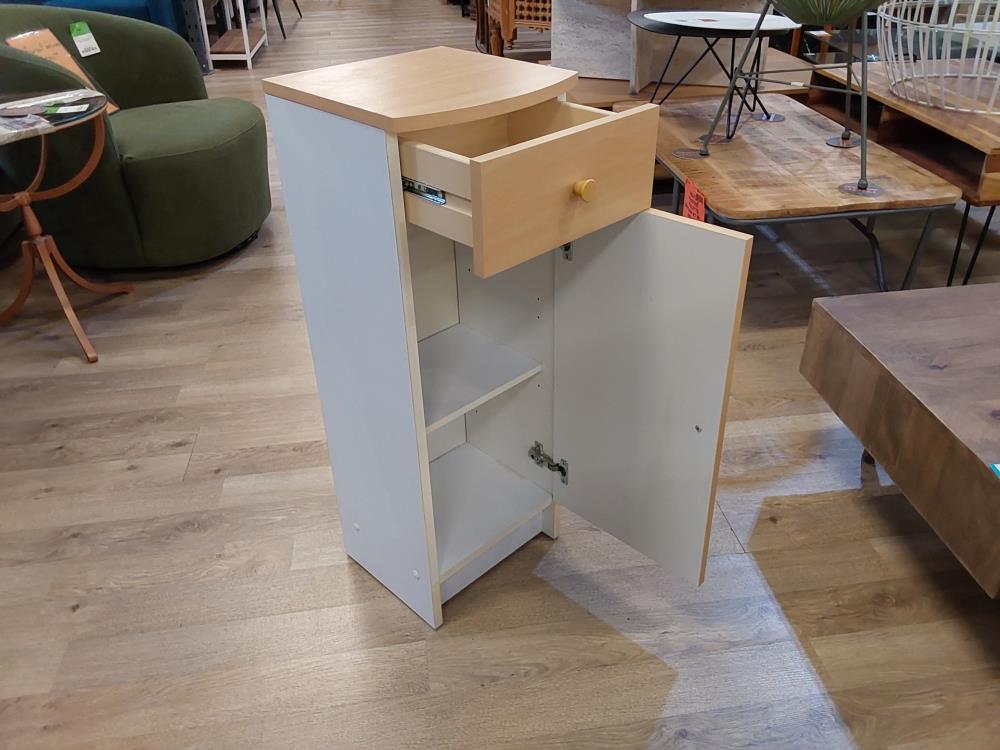 MEUBLE BAS SALLE DE BAIN 1 PORTE 1 TIROIR COLORIS BRUN ET BLANC