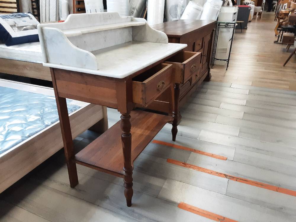 MEUBLE DE TOILETTE 2 TIROIRS PLATEAU MARBRE BLANC