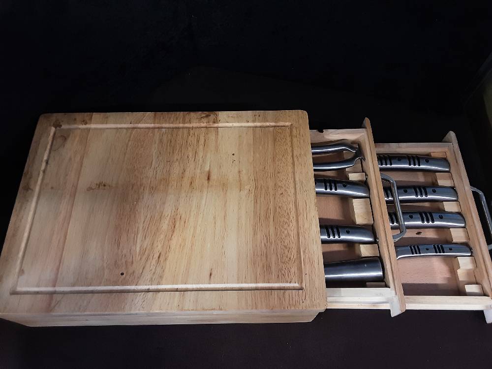 PLANCHE À DÉCOUPER AVEC 5 COUTEAUX 1 FUSIL ETG 1 HACHOIR