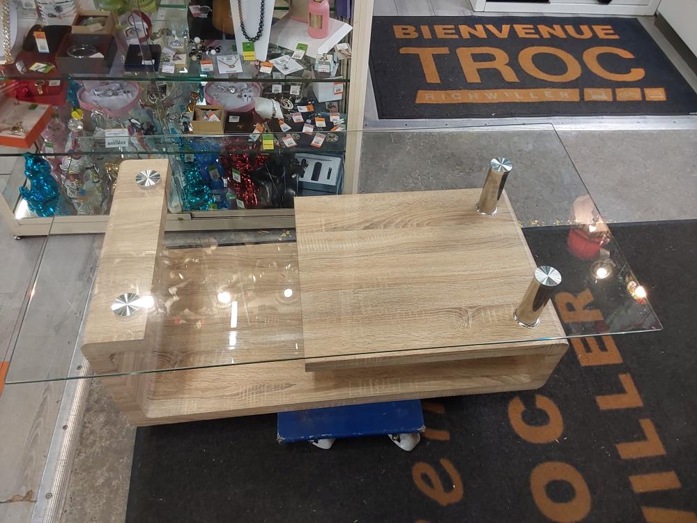 TABLE BASSE VERRE ET BOIS