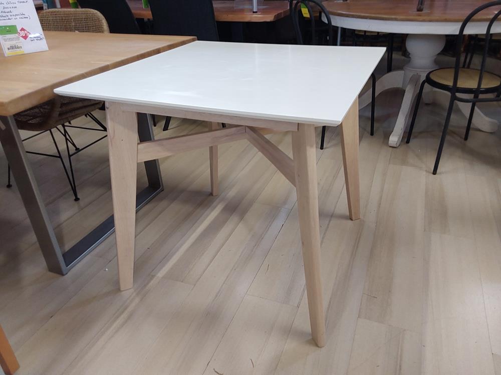 TABLE CARRÉE DESSUS BLANC PIEDS BOIS