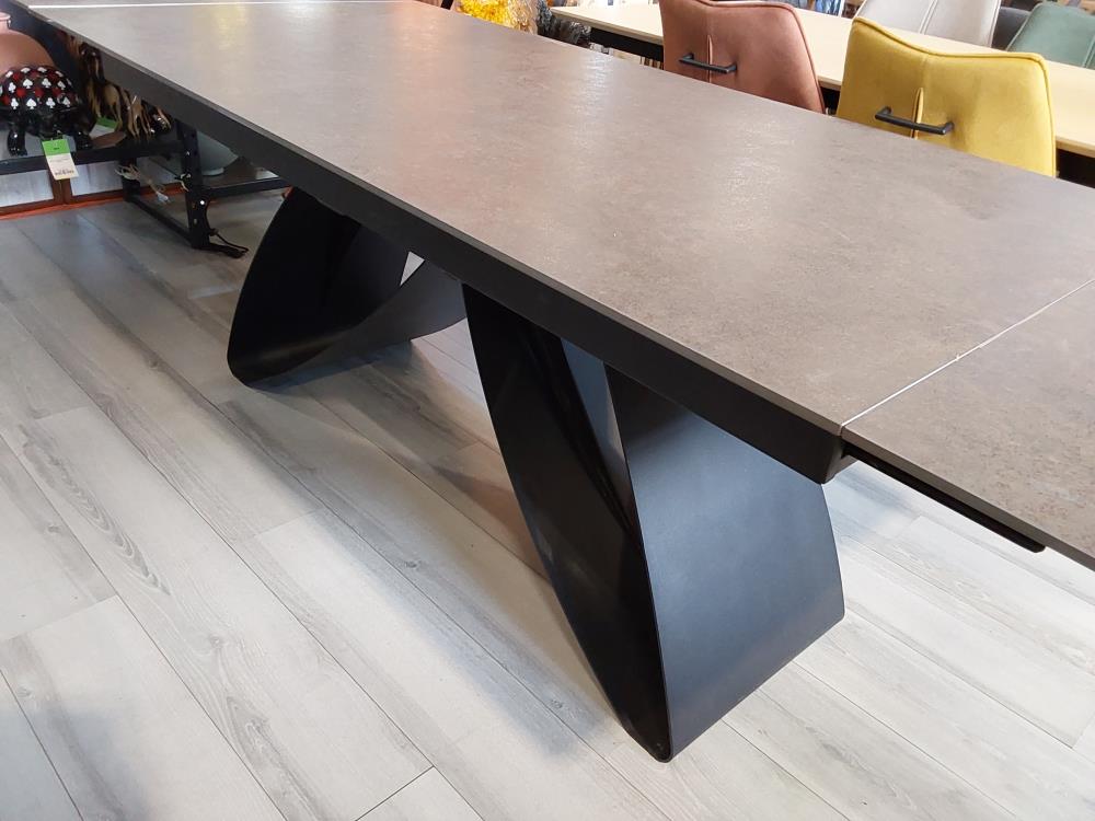 TABLE CÉRAMIQUE GRISE - PIED PAPILLON MÉTAL - 2 ALL. DE 40CM - 2ÈME CHOIX