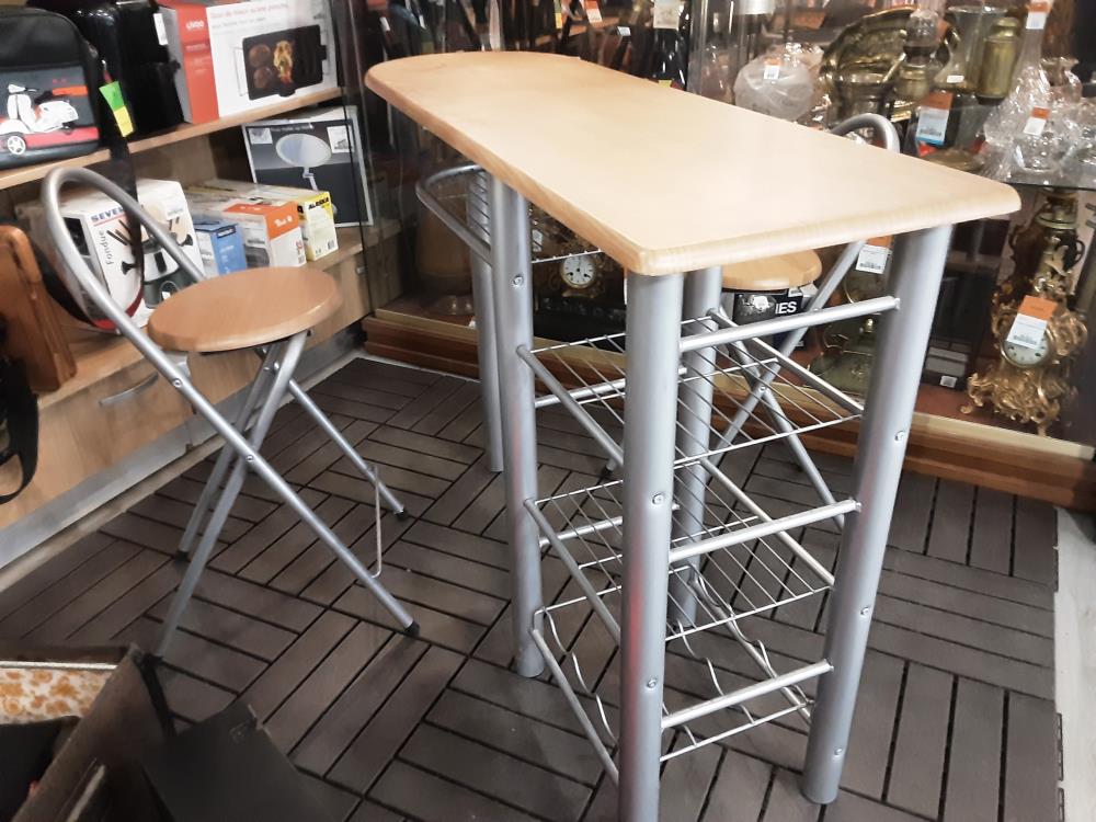 TABLE DE BAR EN BOIS PIEDS MÉTALS + 2 TABOURETS