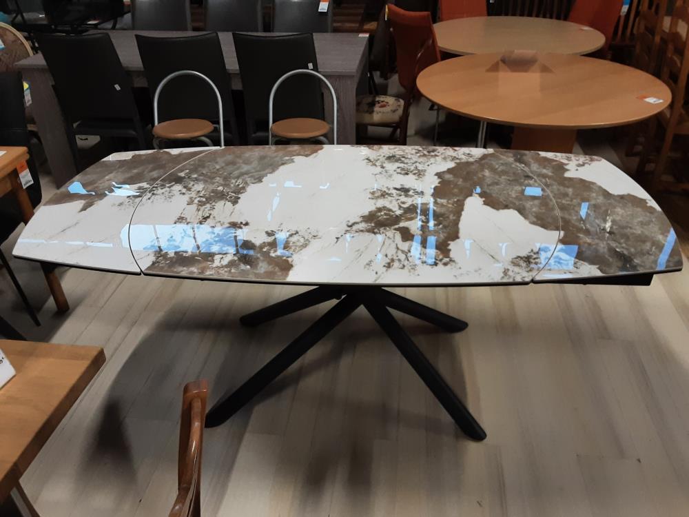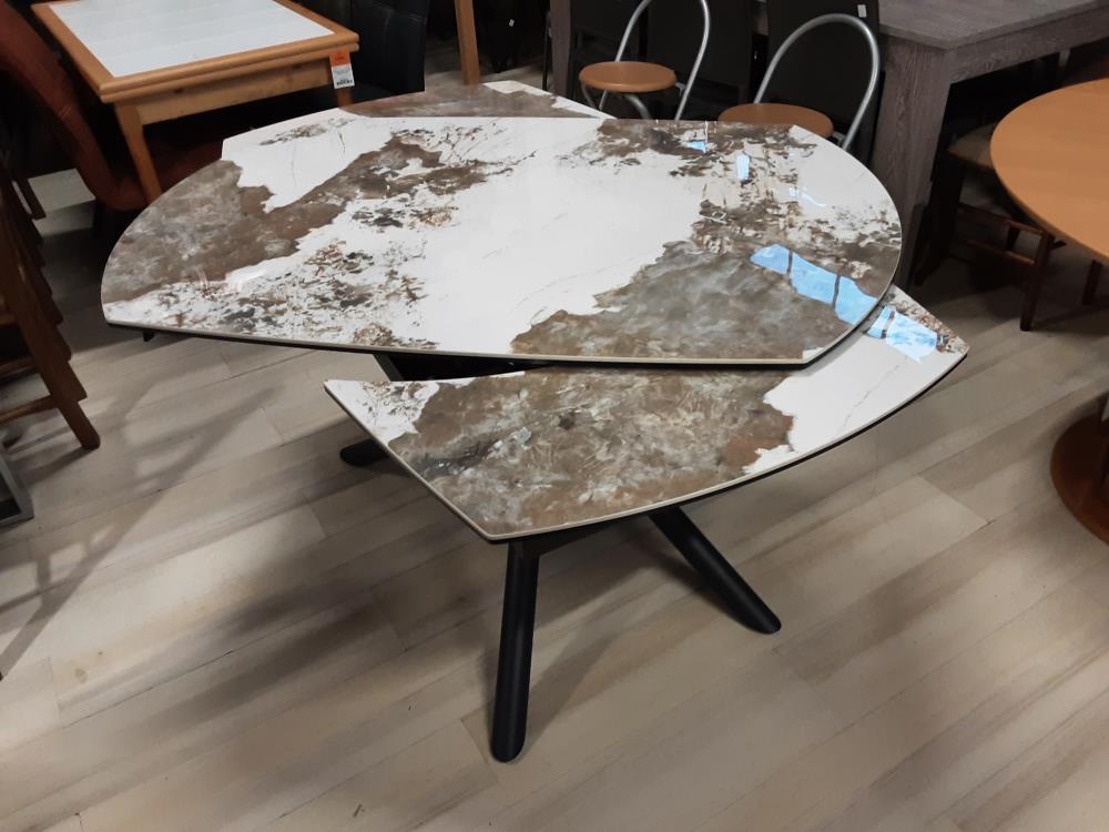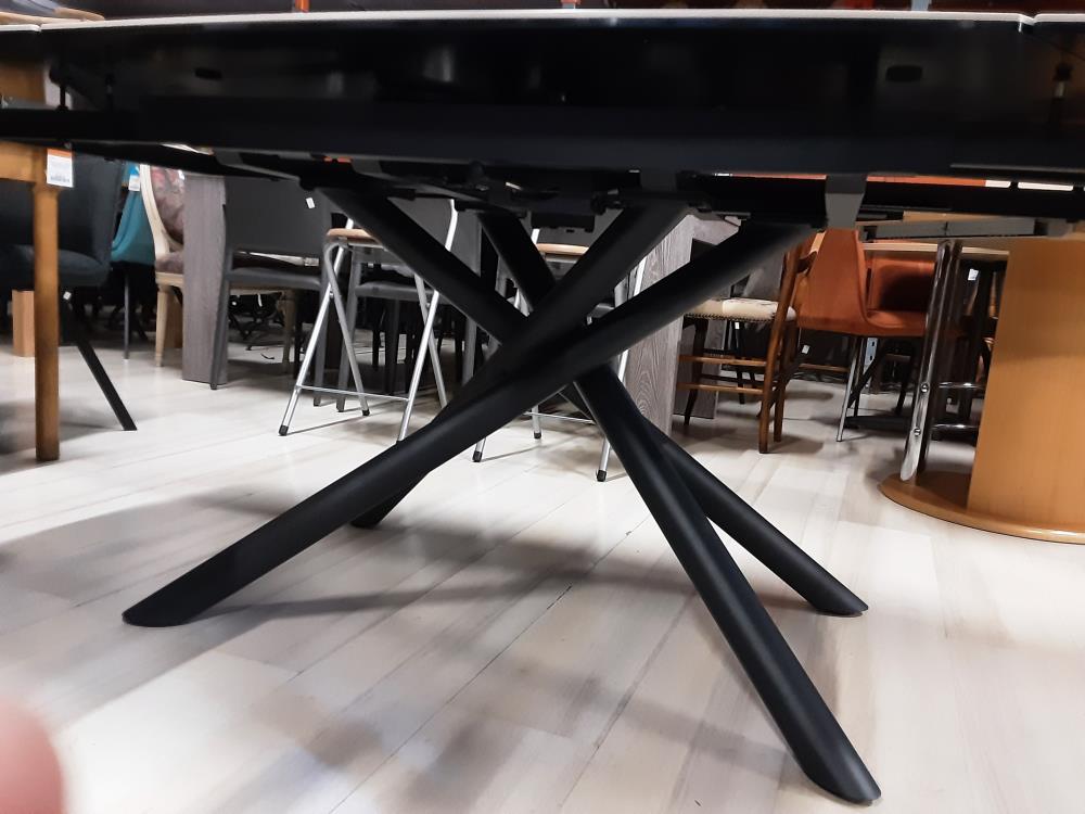 TABLE EN CÉRAMIQUE PLATEAU TOURNANT 2 ALLONGES (=190CM)PIEDS METAL NOIR