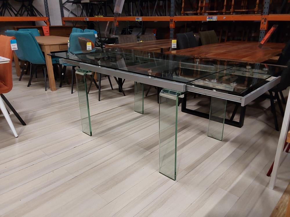 TABLE RECTANGULAIRE EN VERRE 2 RALLONGES A RESTAURER