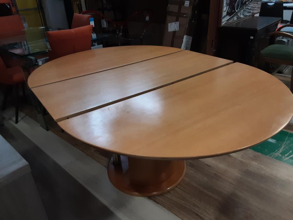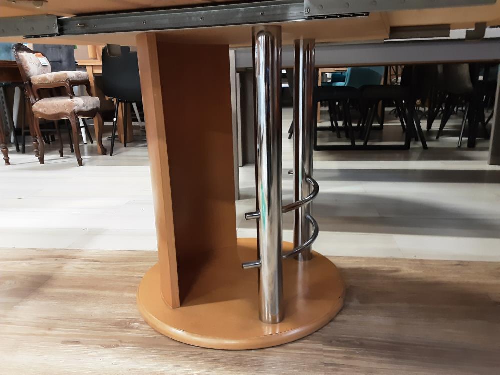 TABLE RONDE COLORIS BRUN ET METALE 1 ALLONGE DE 45 CM = 164 CM OUVERTE