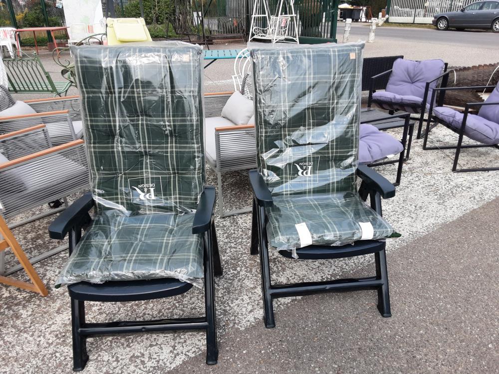 FAUTEUIL DE JARDIN PVC VERT + COUSSIN A RAYURES VERTES ET BLANCHES