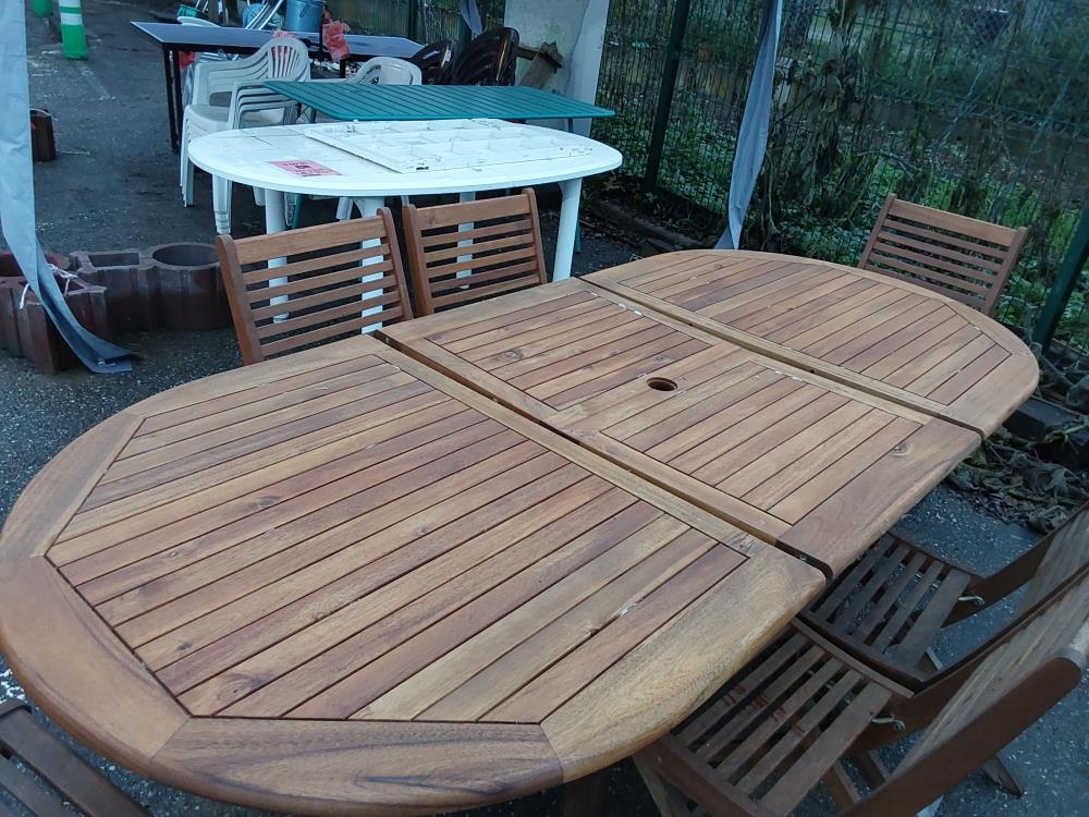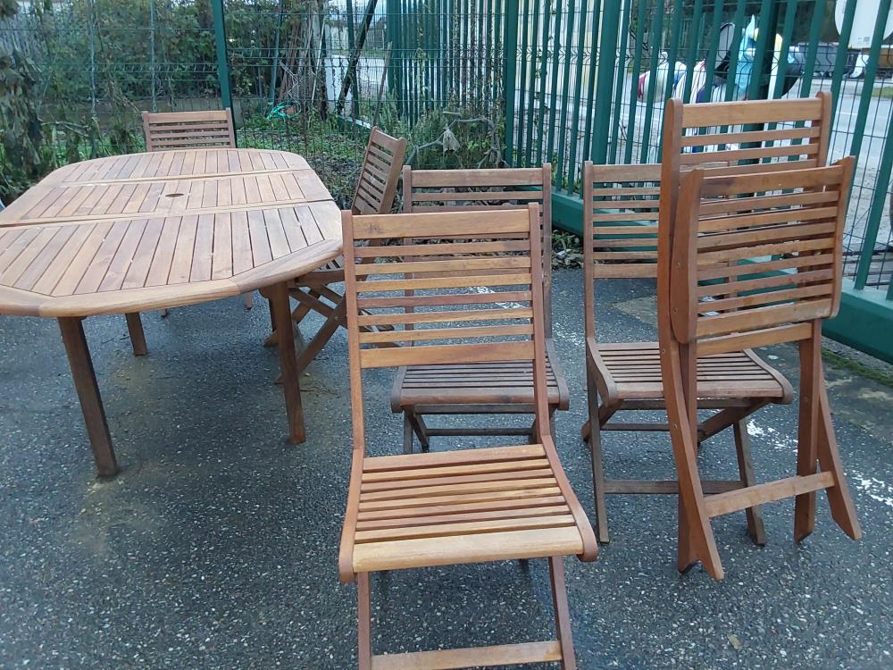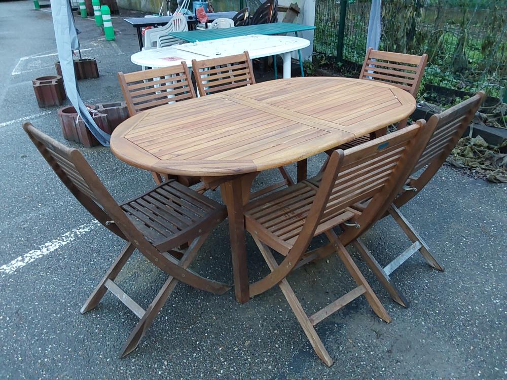 TABLE DE JARDIN OVALE 1 ALLONGE+6 CHAISES EN TECK