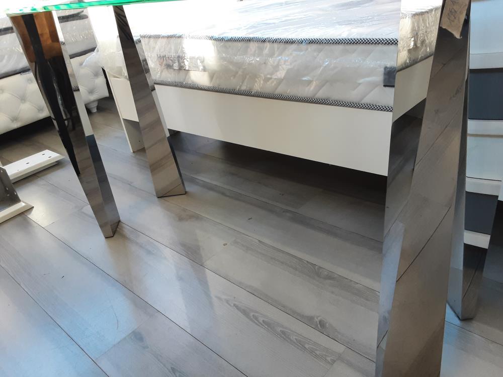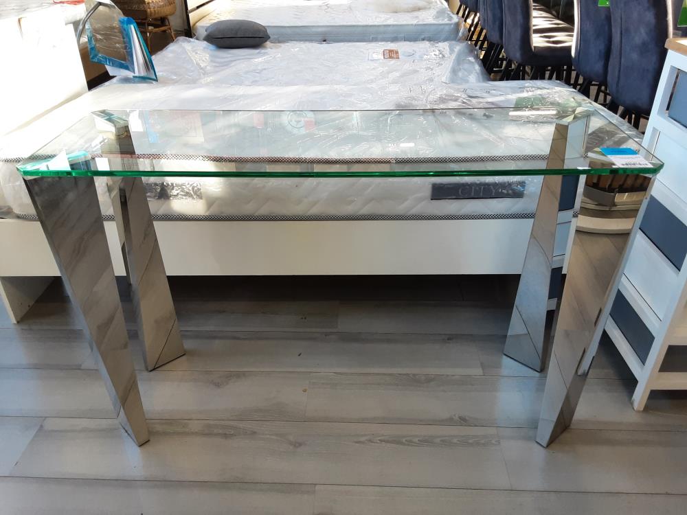 CONSOLE EN VERRE, PIEDS CHROMES (1551)