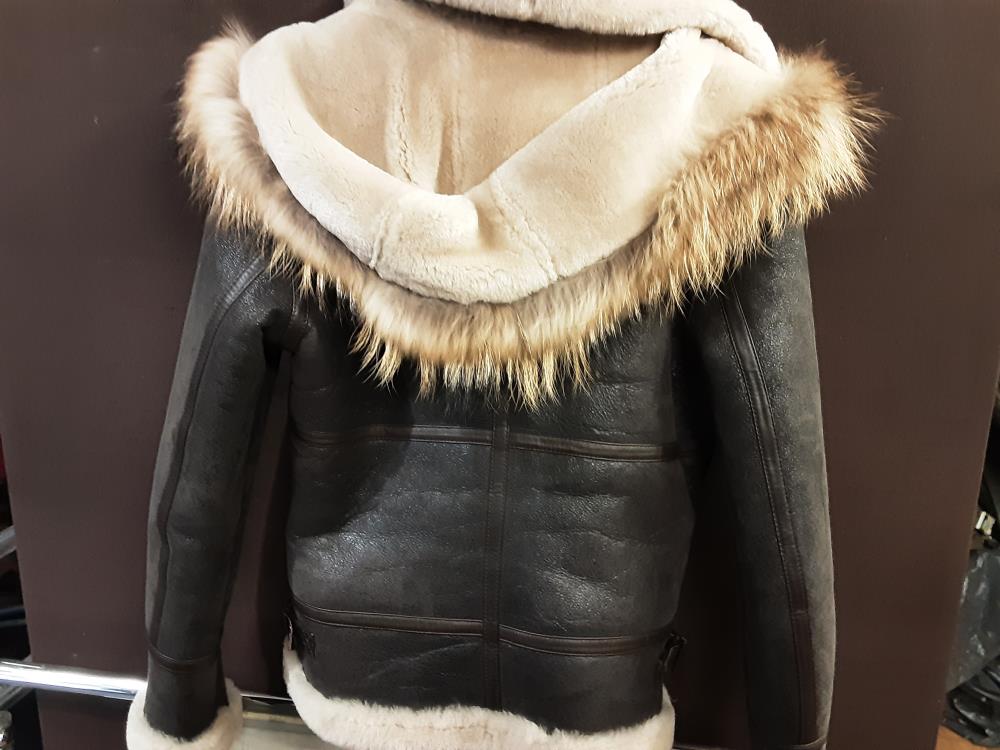 BLOUSON CUIR MOUTON RETOURNE + TOUR DE CAPUCHE EN RENARD TAILLE 36/38